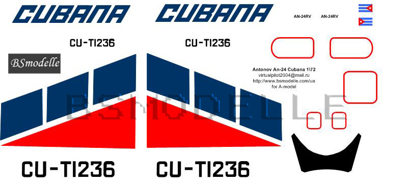 Лазерная декаль Антонов Ан-24 Cubana 70-х масштаб 1\72