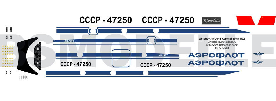 Лазерная декаль Антонов Ан-24 авиакомпания SCAT масштаб 1\72