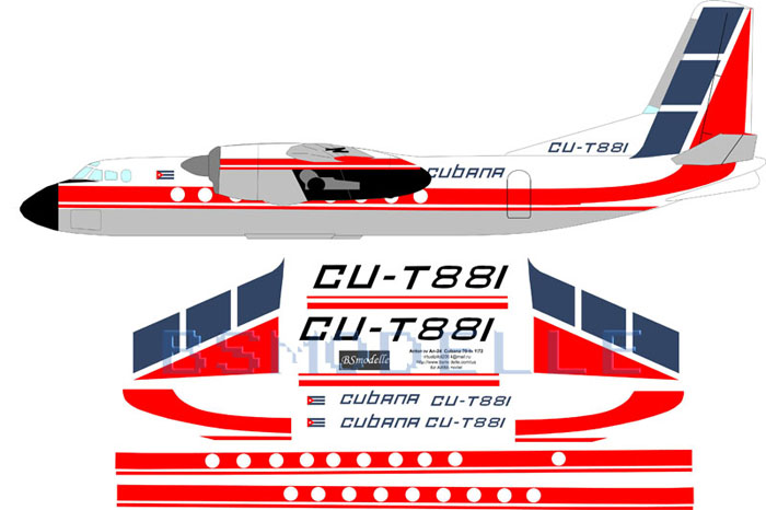 Лазерная декаль Антонов Ан-24 авиакомпания Cubana масштаб 1\72